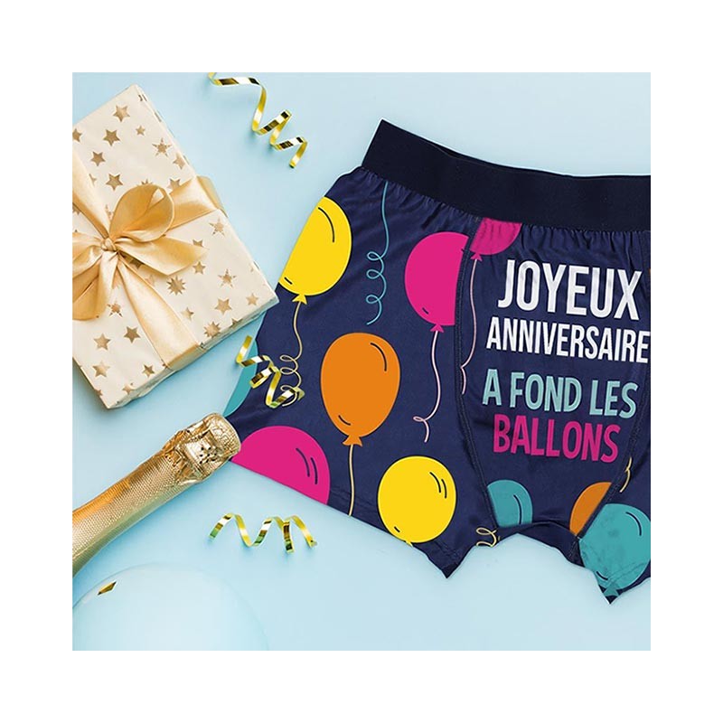 Pour accompagner ce boxer anniversaire, nous proposons d'autres cadeaux marrants comme des chaussons d'anniversaire, des chapeaux, des serre-têtes, des tee-shirts, des médailles, des chaussettes orteils, des colliers à fleurs, des lunettes ou encore des écharpes Mister Anniversaire. Il y a tout ce qu'il faut pour bien rigoler. Avec ces accessoires d'anniversaire humoristiques, vous pourrez déguiser quelqu'un, de la tête aux pieds.