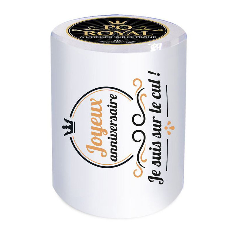 Ce style de cadeau d'anniversaire est parfait pour faire une blague. Il peut être marrant de l'offrir au moment de l'ouverture des cadeaux, pour mettre un peu d'ambiance. Si vous êtes à la recherche d'un cadeau encore plus marrants, ce rouleau de papier toilette joyeux anniversaire existe aussi en modèle "anniversaire merdique". En plus d'être amusant, ce cadeau pourra aussi dépanner la personne à qui vous allez l'offrir.