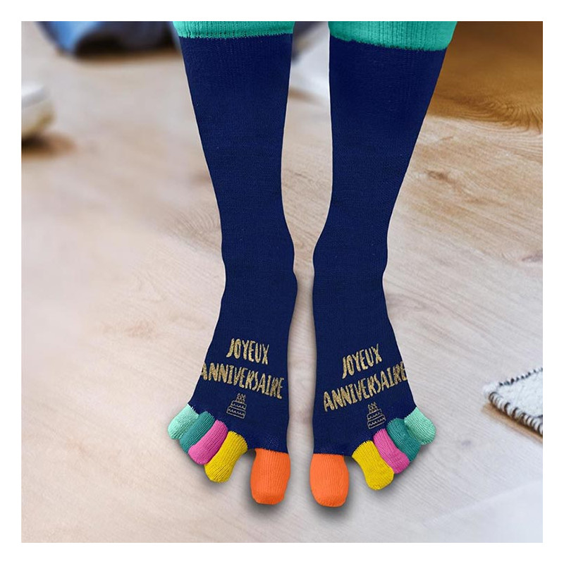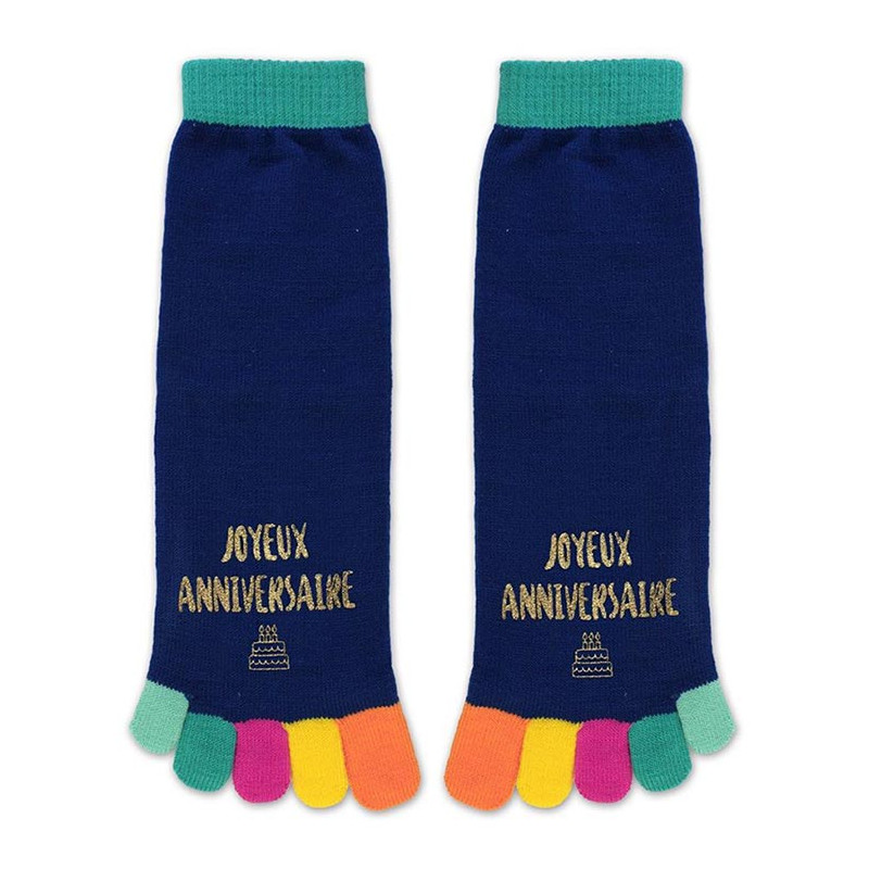 - 1 Paire de chaussettes orteils joyeux anniversaire colorées