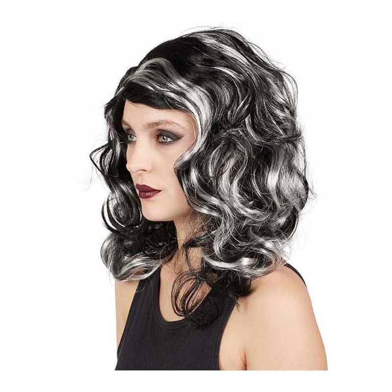 - 1 Perruque sorcière noire et blanche aux cheveux bouclés