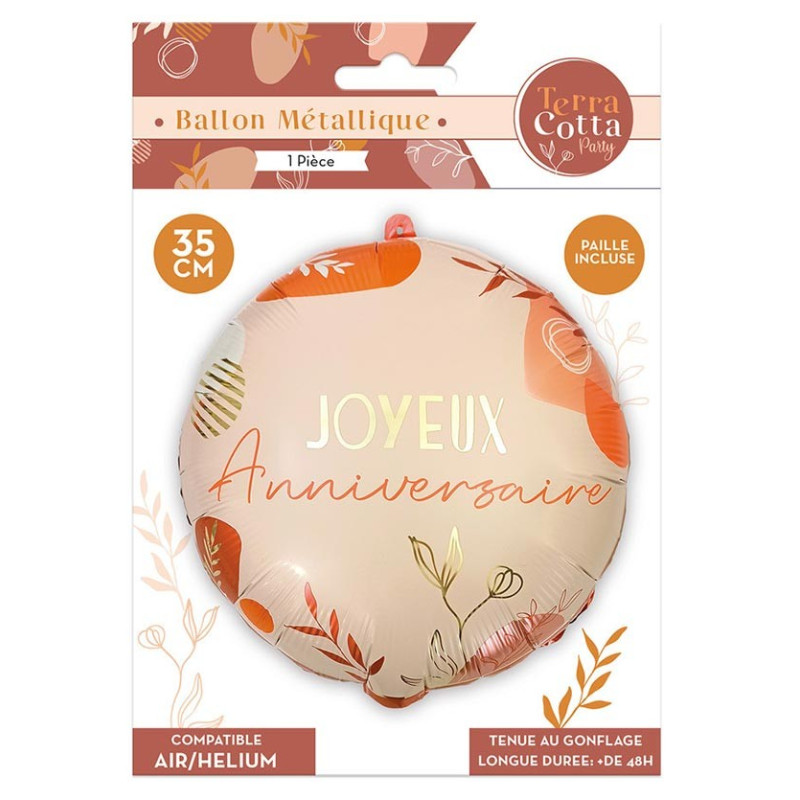 Inclus : Ballon Joyeux anniversaire terracotta 35 cm