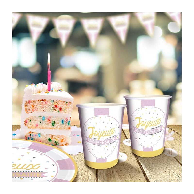 - 6 gobelets en carton anniversaire fille 25cl