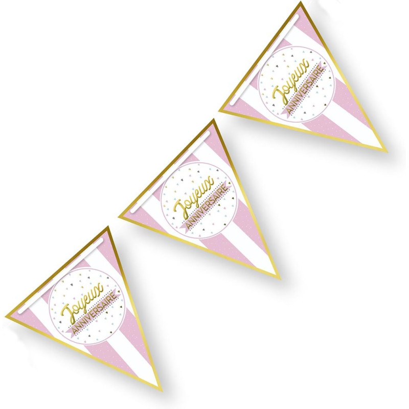 - 1 Guirlande Joyeux anniversaire fille blanche/rose/or fanion 3m