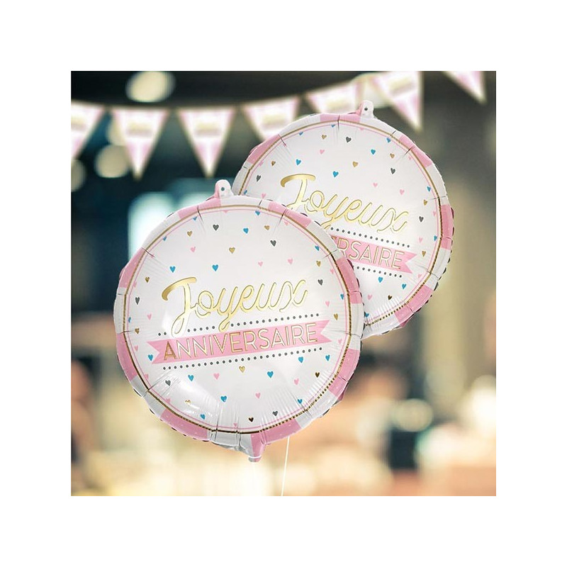 - 1 Ballon alu anniversaire hélium rose blanc or 35cm