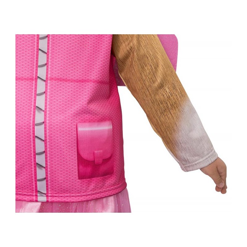 Le costume de Stella enfant est sous licence officielle de la Pat'Patrouille. Cette tenue est déclinée en taille 3/4 ans (104 cm), 5/6 ans (116 cm) et 7/8 ans (128 cm). Elle contient une tunique rose à manches longues marron/beige qui imitent des poils de chien avec une aile qui se scratch au dos. Sa jupe en tulle/tissu rose pailleté est élastique au niveau de la ceinture. Le bandeau représente des lunettes d'aviateur avec deux longues oreilles qui, s'ajuste à la taille de la tête. Ce déguisement est un cadeau parfait pour un enfant qui fête son anniversaire avec la Pat'Patrouille.
