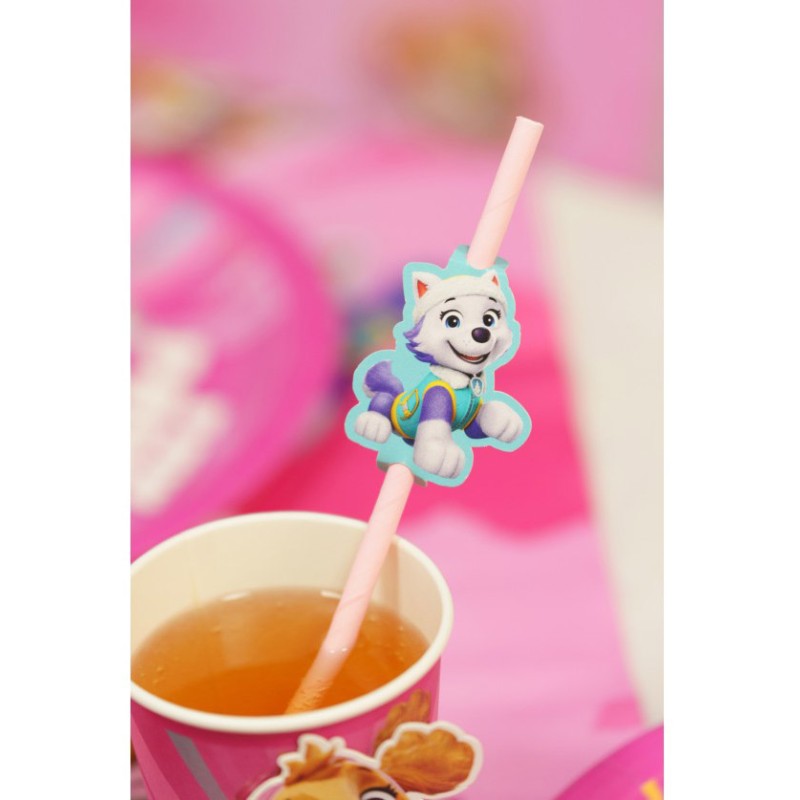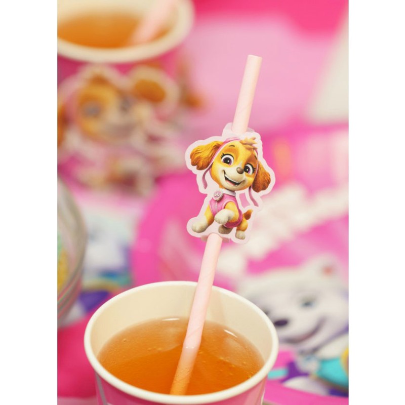 - 8 Pailles en papier Pat'Patrouille roses 19,6cm