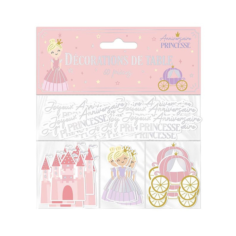 - 60 Confettis de tabla anniversaire thème princesse en carton