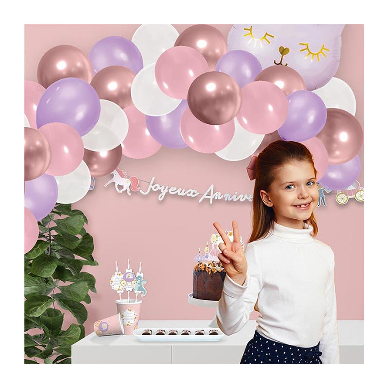 En plus de ce kit arche de ballons, vous trouverez dans notre rubrique dédiée aux décorations d'anniversaire princesse, de nombreux autres accessoires décoratifs comme des pinatas, des guirlandes, ainsi que d'autres modèles de ballons en alu et en latex.