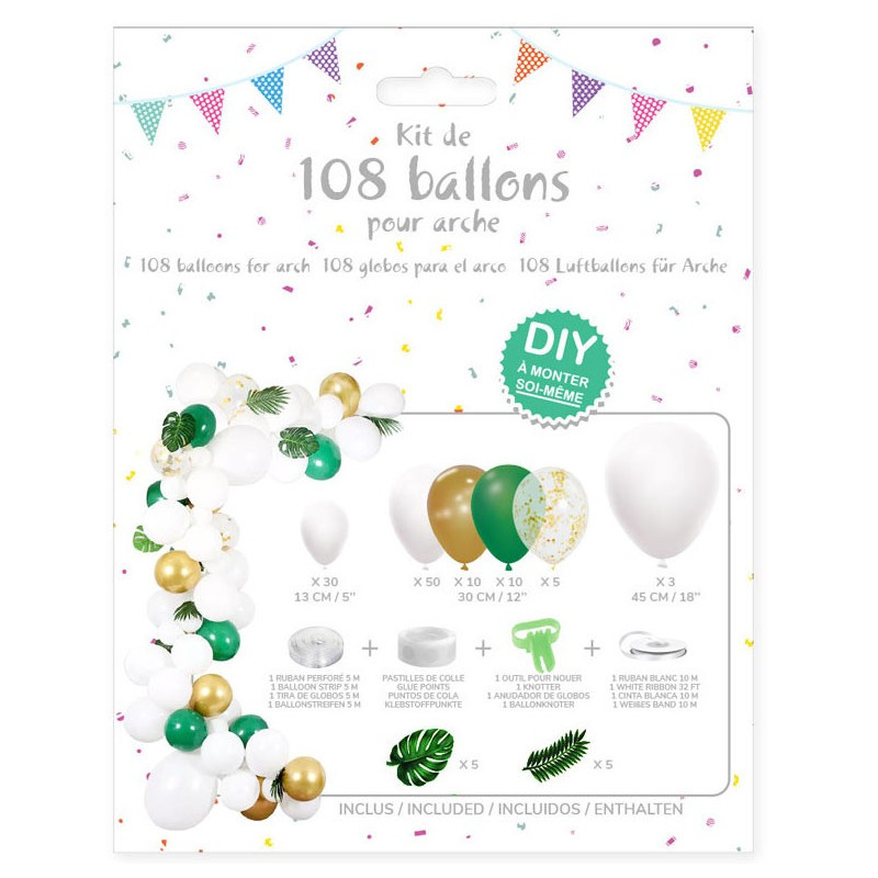 Kit Arche de 108 Ballons Jungle avec Feuilles