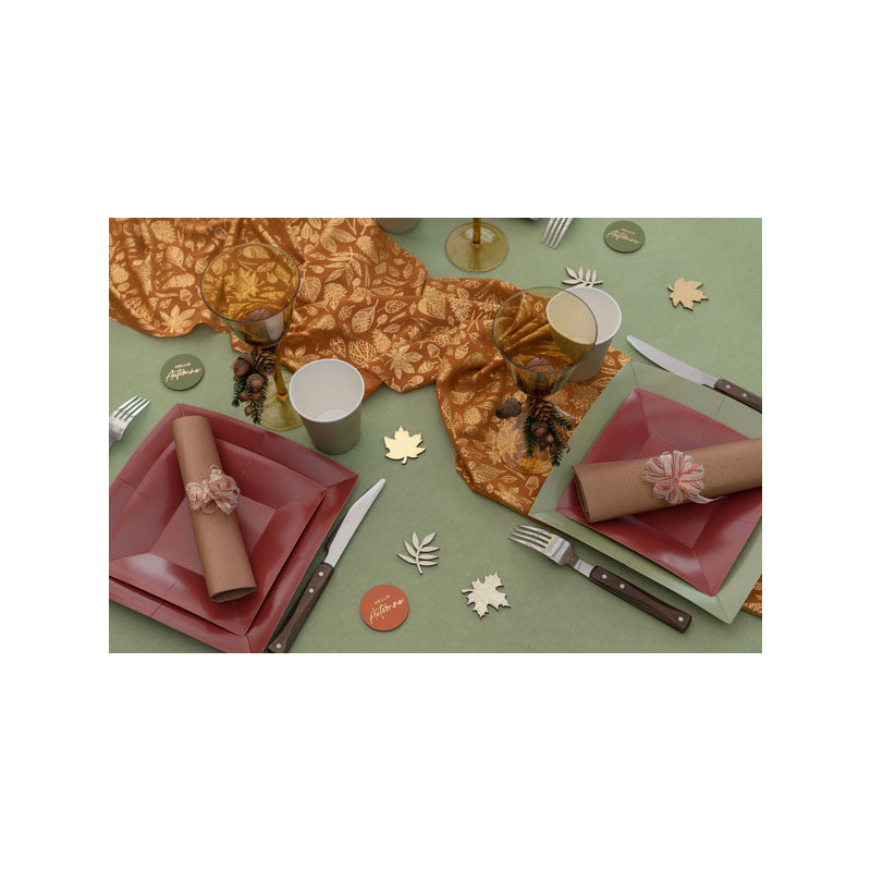 Pour accompagner ces assiettes compostables, vous trouverez des gobelets en carton vert sauge assortis, mais aussi des serviettes jetables Airlaid, ainsi que des chemins de table. Il y a tout ce qu'il faut pour composer une belle table avec des couleurs naturelles à l'occasion d'un évènement comme un anniversaire, un baptême, un départ à la retraite, un mariage, une baby shower...