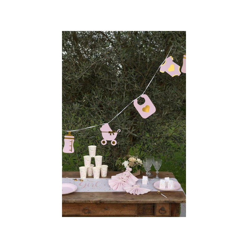 Inclus : 1 Guirlande baby shower fille rose/or 5 m