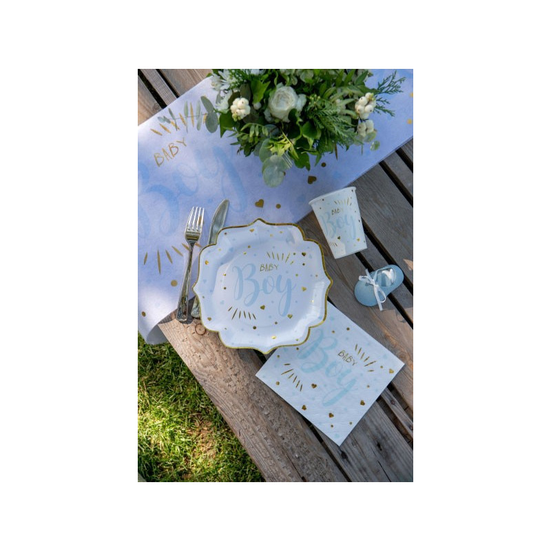En plus des gobelets baby boy et de la vaisselle jetable, il existe plusieurs accessoires décoratifs pour les tables comme des chemins de table, de petites boîtes pour mettre des bonbons ou des dragées, ainsi que des confettis de table.