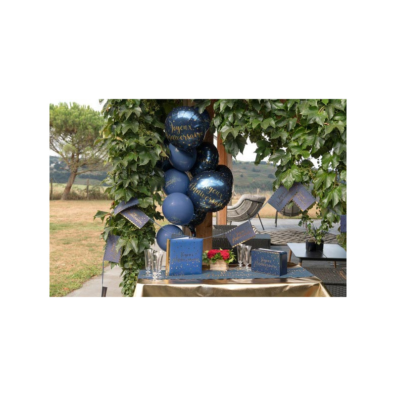 Inclus : 6 ballons joyeux anniversaire bleu/or en latex
