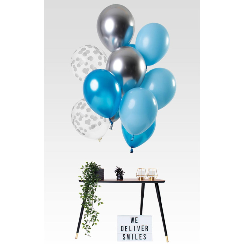 Bouquet Ballons Bleus et Argent x12