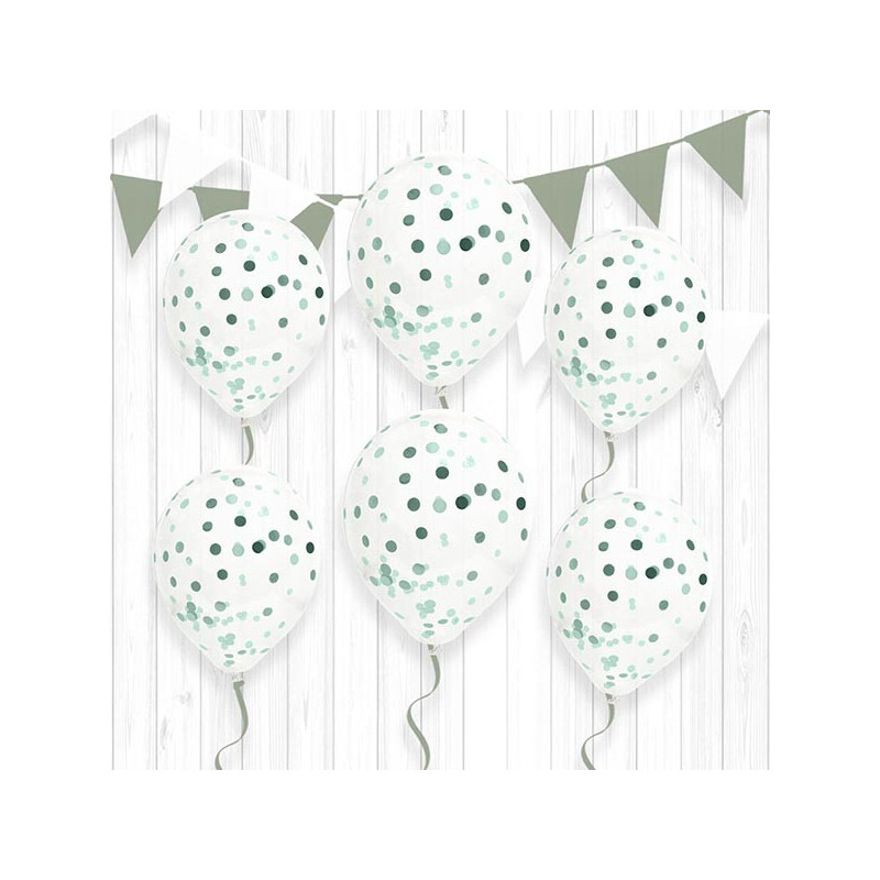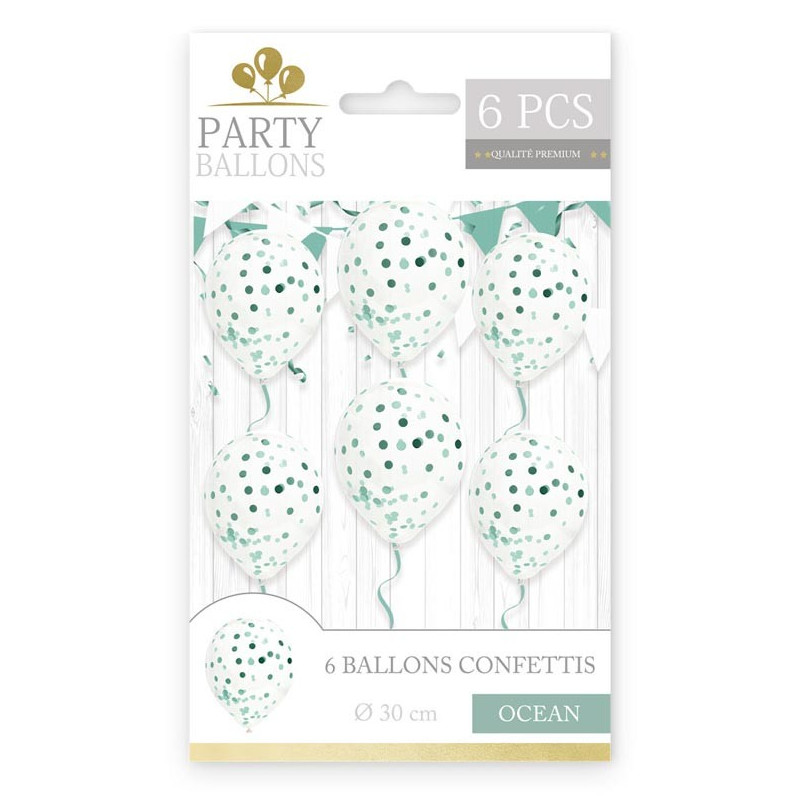 - 6 Ballons confettis vert d'eau en latex, 30cm
