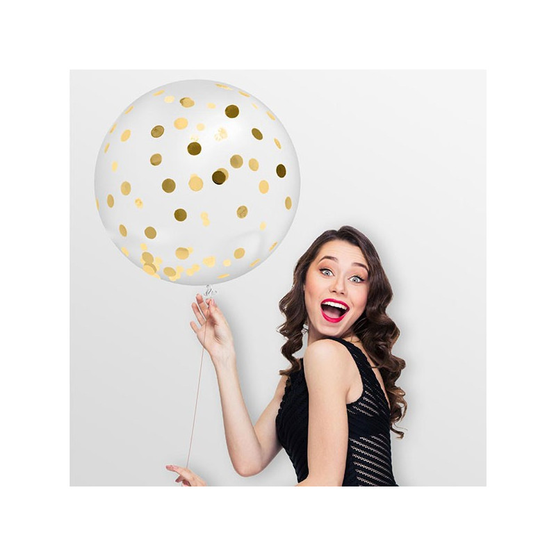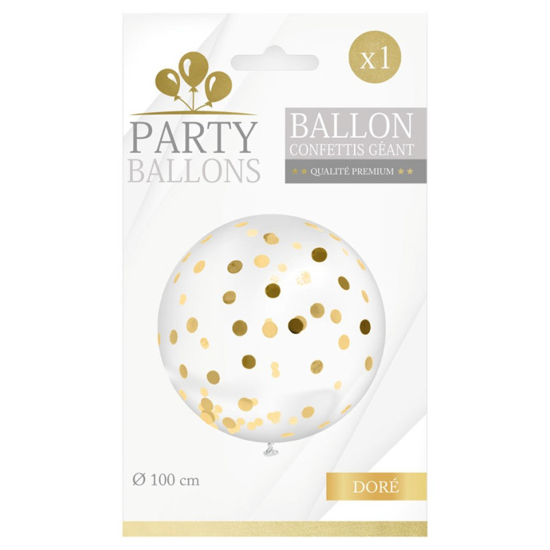 Inclus : 1 Ballon confettis or géant en latex,100cm