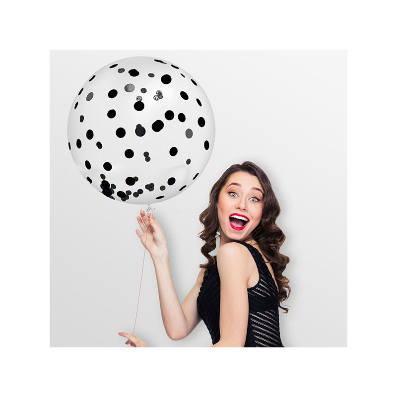 Inclus : 1 Ballon confettis noir géant en latex,100cm