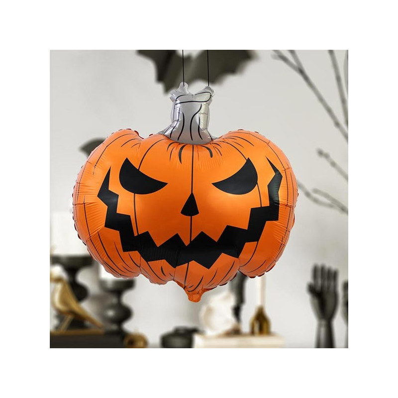 Ce modèle de ballon Halloween citrouille à une tenue longue durée, ce qui lui permet de rester gonflé pendant plus de 48 heures. Pour accompagner cette citrouille gonflable, vous trouverez sur notre site un choix immense en ballons d'Halloween. Dans le même style, il existe des modèles en forme d'araignée, de squelette, de chapeau de sorcière, mais aussi des ballons ronds plus classiques décorés avec une inscription "Halloween".
