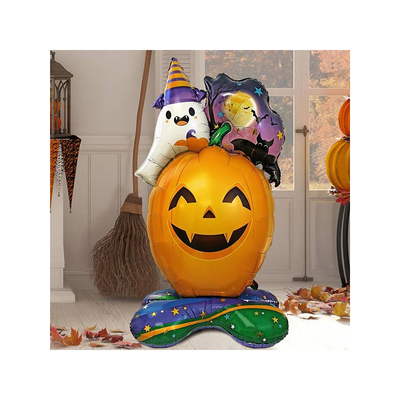 Ballon Citrouille Halloween Alu avec Base 123 cm