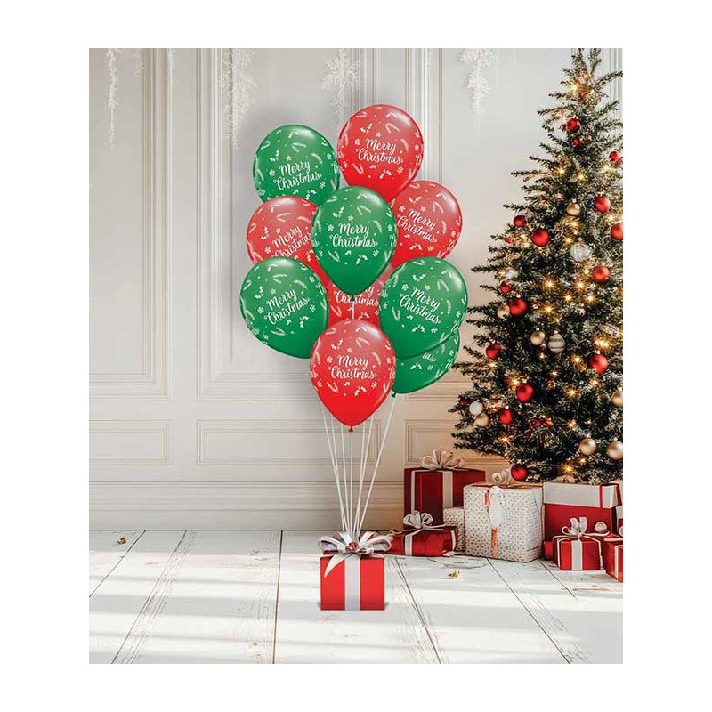 Inclus : 10 Ballons de baudruche Merry Christmas verts et rouges 23cm