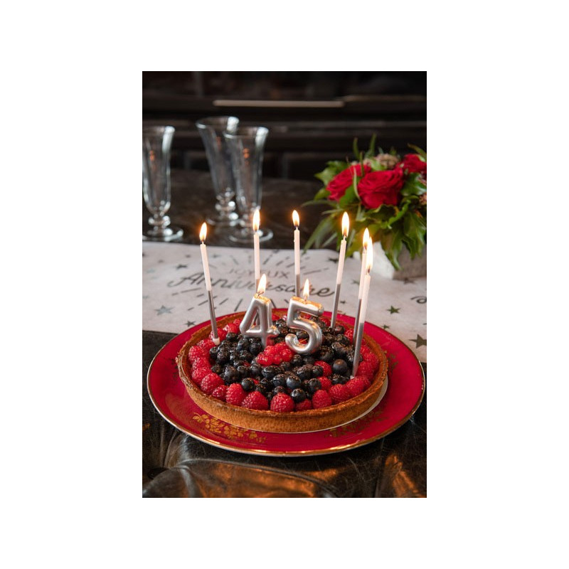 Inclus : 12 Bougies anniversaire blanc/argent 12.5cm