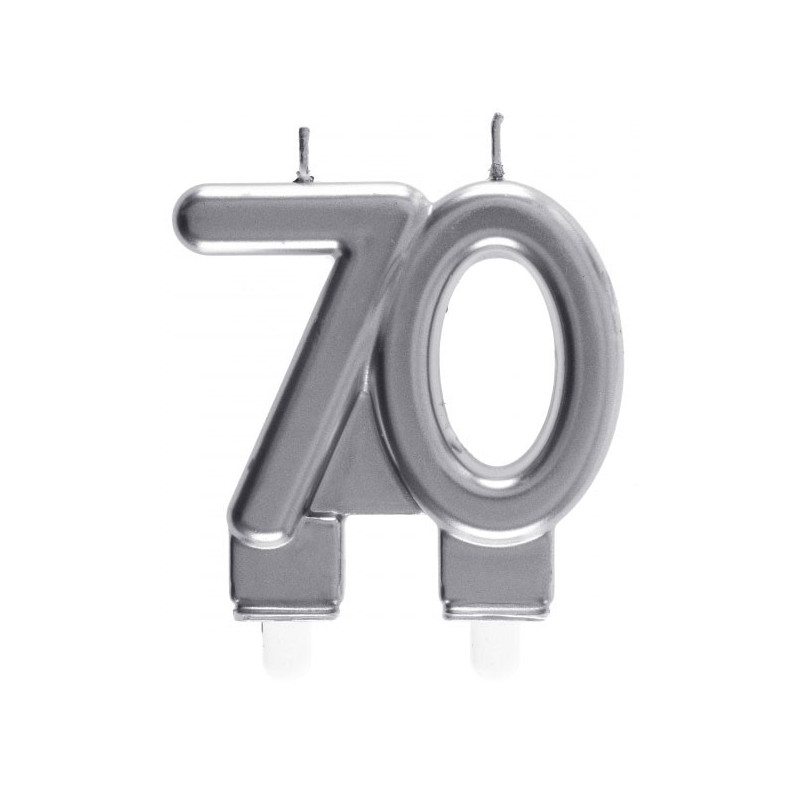 Inclus : 1 Bougie argent 70 ans 8.5x7.5cm