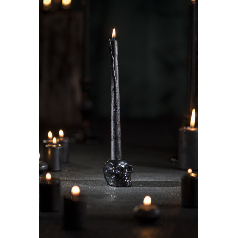 Inclus : 1 Bougeoir crâne noir Halloween en verre 7,2x5cm