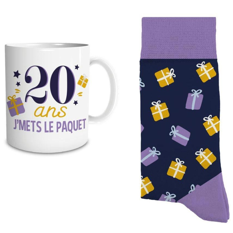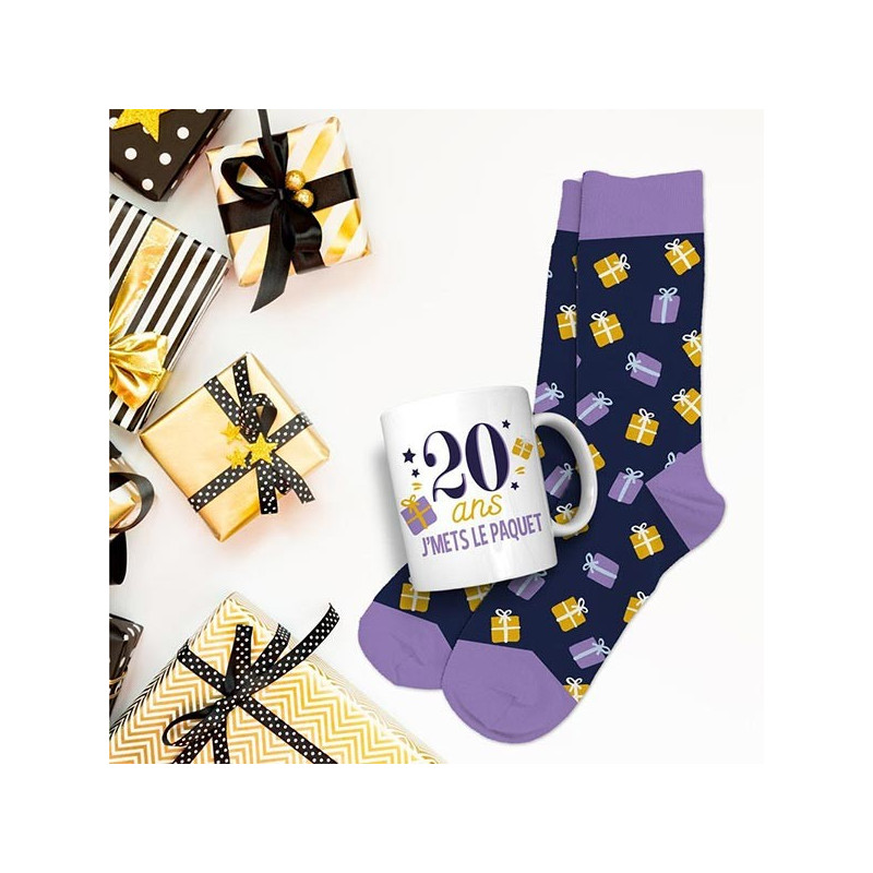 Coffret Cadeau Mug avec Chaussettes 20 ans Homme