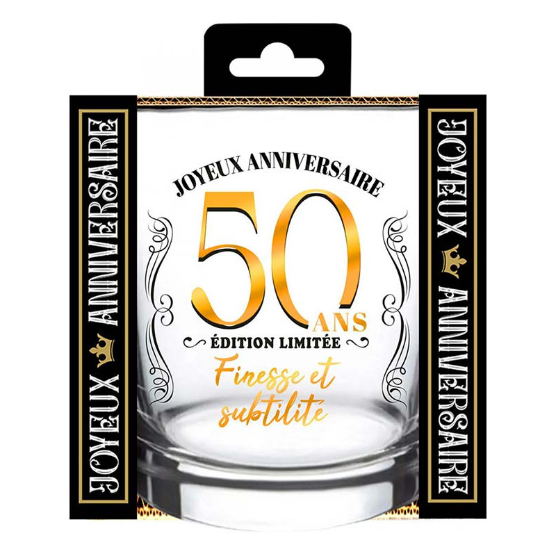Inclus : 1 Verre à whisky anniversaire 50 ans 9x8cm