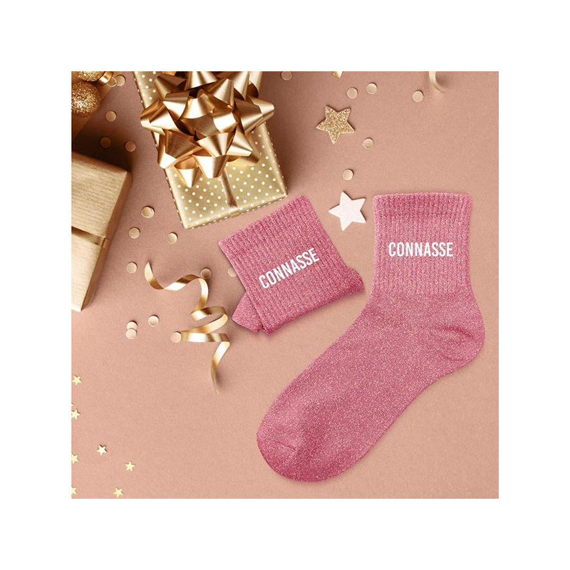 Si vous êtes à la recherche de chaussettes à paillettes amusantes comme ce modèle connasse, vous trouverez de nombreux autres modèles sur notre site comme les chaussettes casse-pied, sale gosse, chieuse, têtue, emmerdeuse... Il y a tout ce qu'il faut pour bien rigoler et offrir des chaussettes paillettes vulgaires différentes à chacune de vos amies. Bien évidemment, nous avons aussi des chaussettes paillettes avec des messages mignons et gentils.