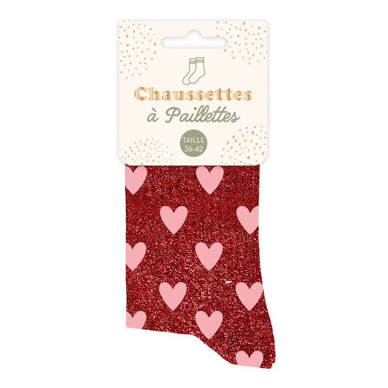 Inclus : 1 Paire de chaussettes paillettes coeurs 36/42