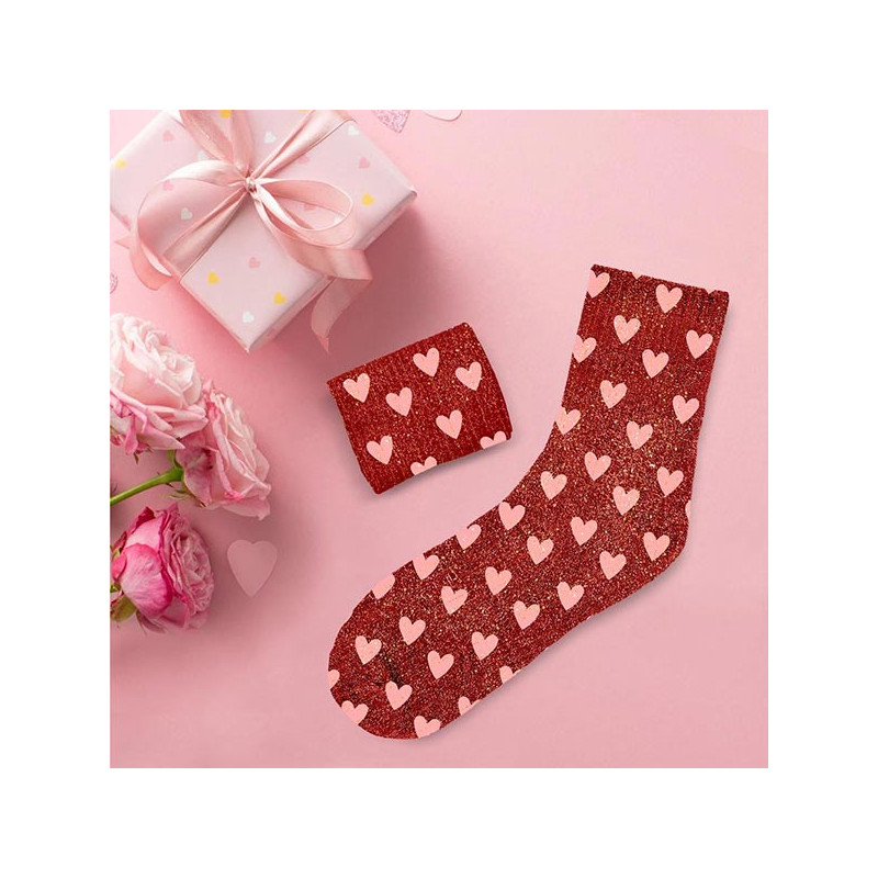 Chaussettes Paillettes Coeurs Rouges Femme