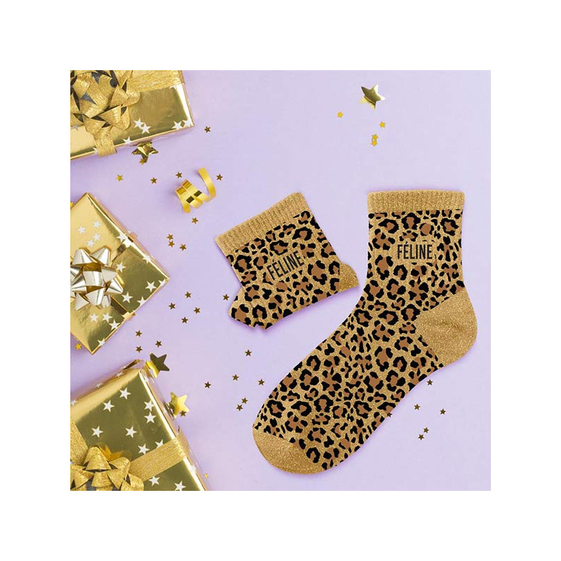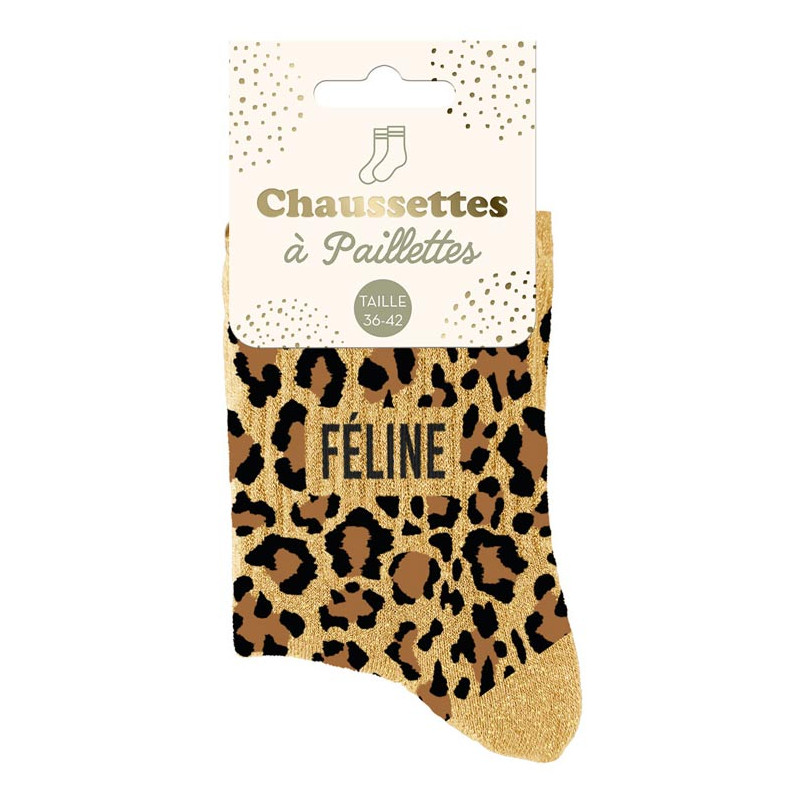 Inclus : 1 Paire de chaussettes paillettes Féline Léopard 36/42