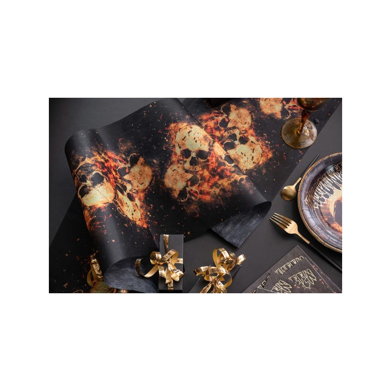 Inclus : 1 Chemin de table Halloween crânes enflammés 500x30cm