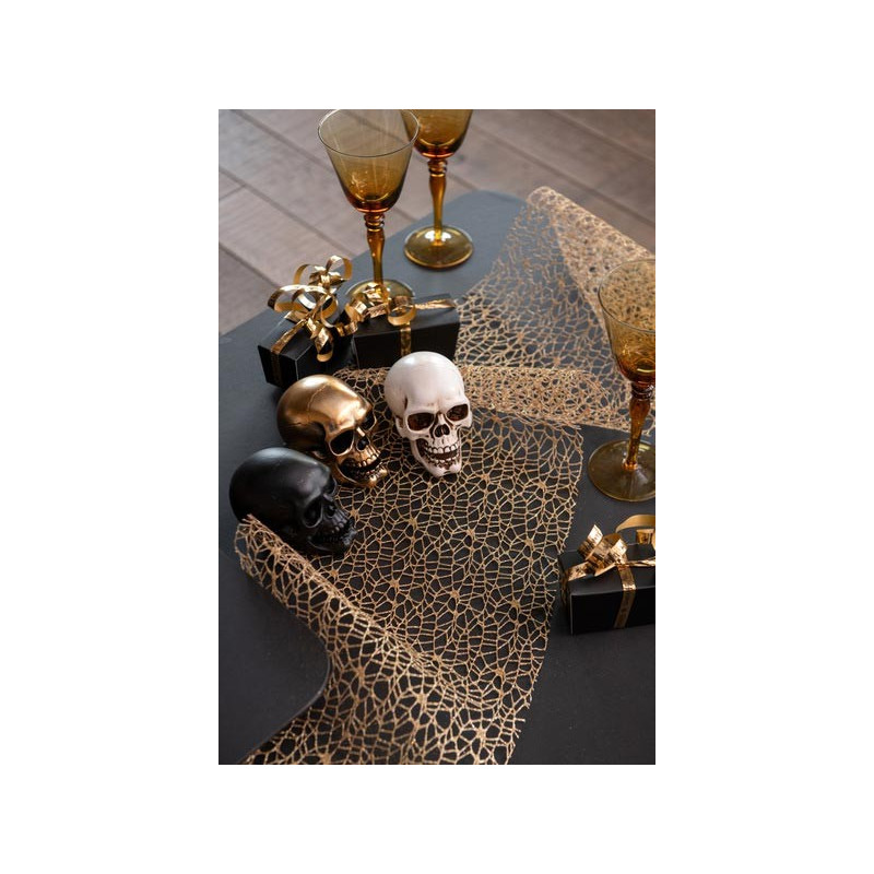 Inclus : 1 Chemin de table Halloween toile d'araignée or 300x28cm