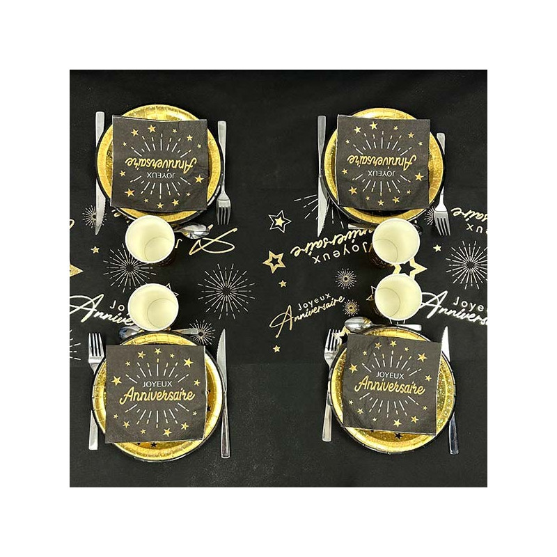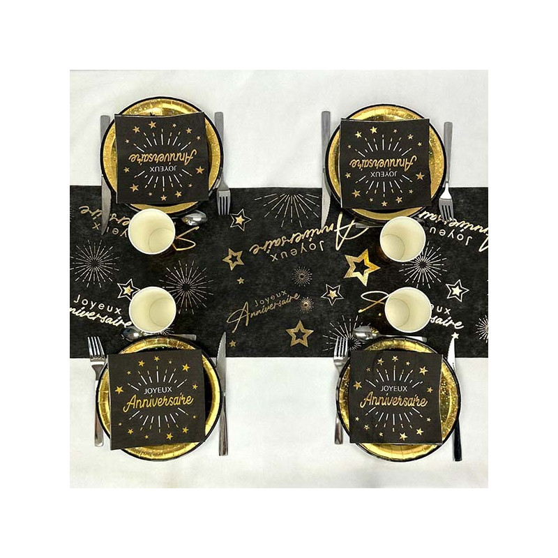 Inclus : Chemin de table joyeux anniversaire noir/or 500x31,5cm