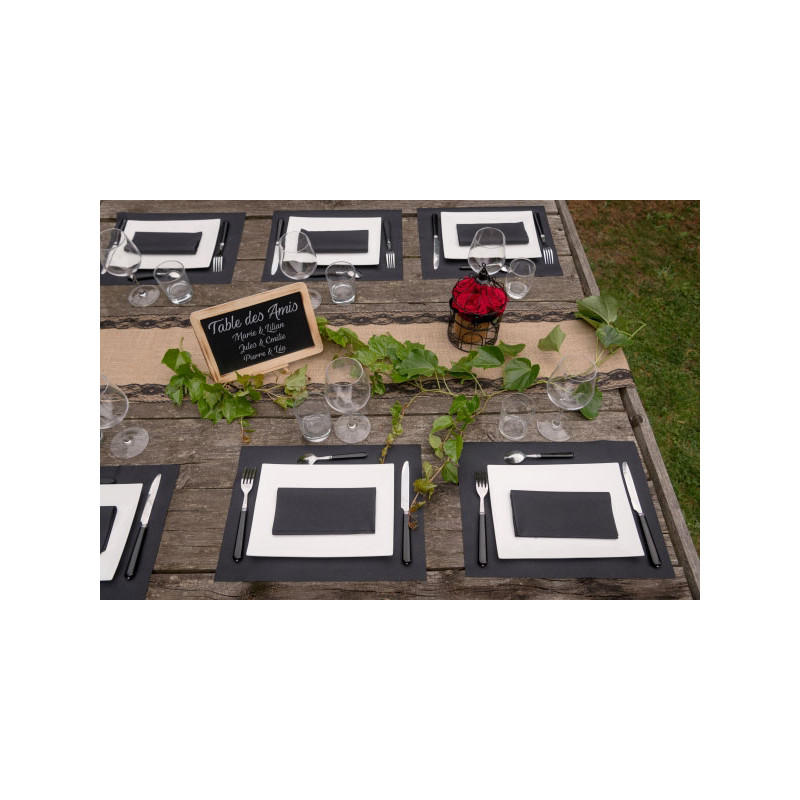 Inclus : 1 Chemin de table noir Airlaid 4,8m