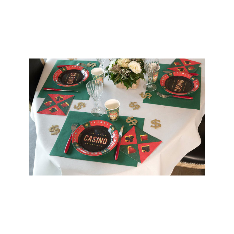 Pour accompagner le chemin de table, nous proposons également une gamme complète de vaisselle jetable vert foncé. Assiettes en carton compostables, serviettes airlaid et gobelets en carton, il y a tout le nécessaire pour manger, rester propre et se désaltérer lors d'une fête.