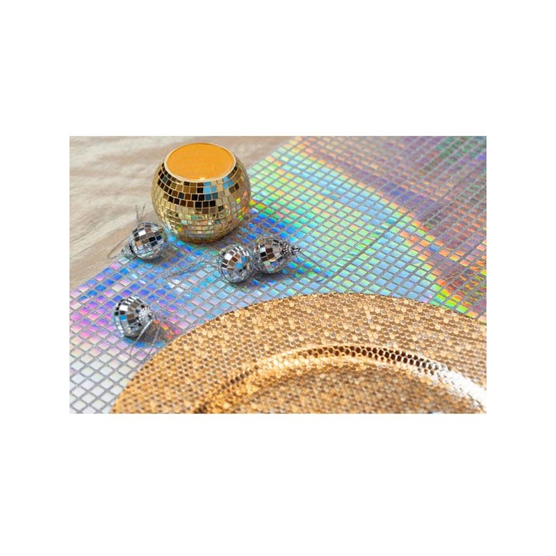 Inclus : 1 Chemin de table Disco irisé effet boule à facettes 3m