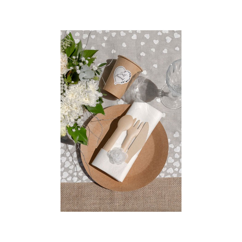 Pour mettre sur votre table avec ces cuillères jetables et les autres couverts nous avons une gamme de vaisselle en carton couleur kraft assortie.