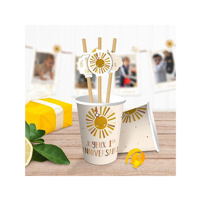 - 12 pailles 1 an en carton de 20 cm avec badge