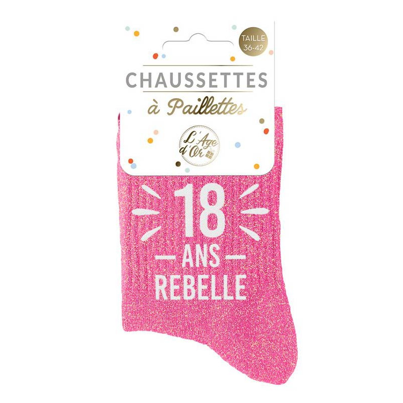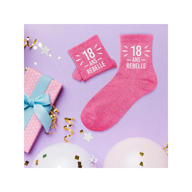 Si la personne qui célèbre ses 18 ans est fan de chaussettes à paillettes, de nombreux modèles sont proposés sur notre site. Nous avons un large choix en chaussettes paillettes avec des messages : gentils, mignons, amusants et même parfois méchants (pour rigoler bien évidemment).