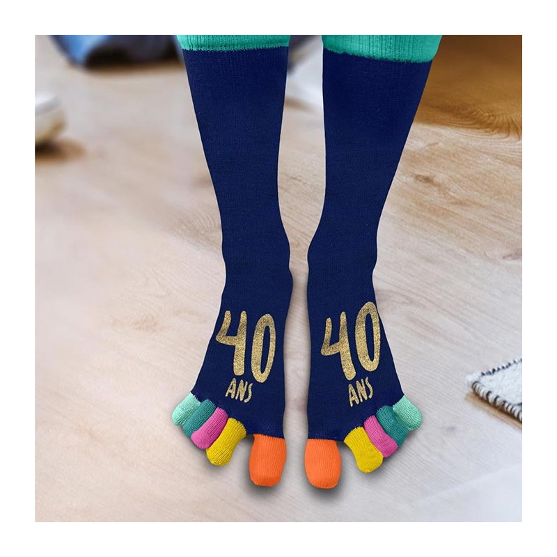 - 1 Paire de chaussettes orteils anniversaire 40 ans multicolore