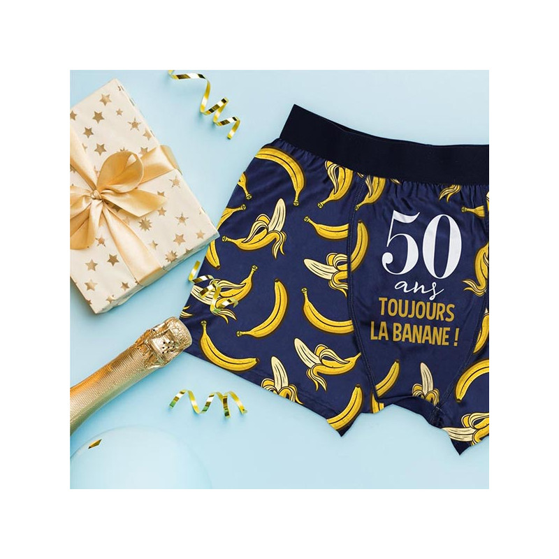 Pour accompagner ce boxer anniversaire 50 ans, nous proposons d'autres accessoires amusants sur le thème des 50 ans comme des médailles, des écharpes "Mister 50 ans", des chapeaux, des lunettes, des bretelles, des shooters, des trophées, sans oublier les coffrets cadeaux 50 ans dans lesquels vous trouverez un mug et une paire de chaussettes. Grâce à ces nombreux cadeaux sur le thème des 50 ans, vous êtes sûr de rigoler !