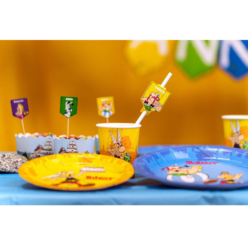 Pour éviter tout problème, il est recommandé de prévoir un paquet de pailles Astérix & Obélix de secours. Cela vous sauvera peut-être si un enfant n'est pas satisfait de son gaulois. Si vous souhaitez avoir une décoration de table d'anniversaire à 100% sur le thème d'Astérix et Obélix, nous avons dans la même gamme des gobelets en carton assortis, des serviettes en papier ainsi que des assiettes. En plus de la vaisselle jetable, vous trouverez tout ce qu'il faut pour décorer une table : chemin de table, nappe, pics décoratifs, support à mignardises en forme de menhir, moules à cupcakes, confettis de table...