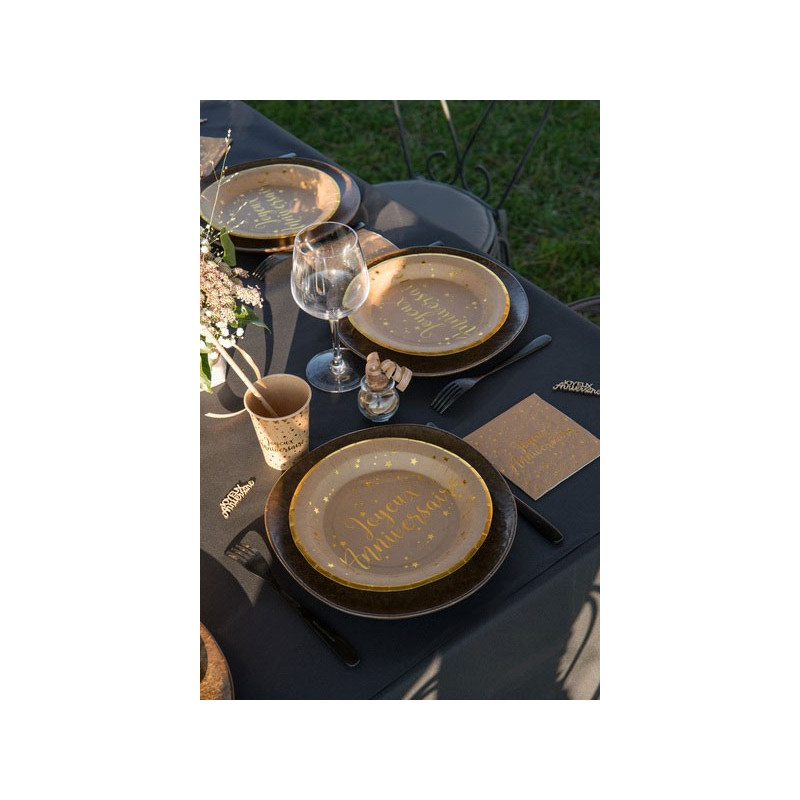 Assiette Anniversaire en Carton Kraft/or x10
