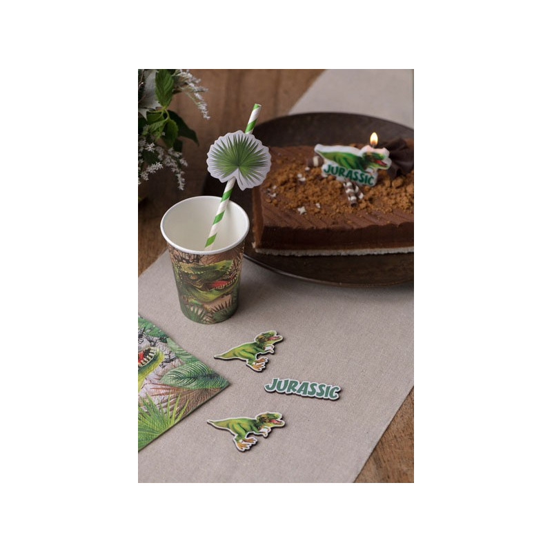 Grâce à ces confettis de table dinosaure et à tous ces accessoires, il sera très facile de créer une décoration de table dinosaure. Pour accompagner une belle déco de table d'anniversaire sur le thème des dinosaures, nous avons aussi de la vaisselle jetable en carton (pailles, gobelets, assiettes et serviettes en papier).