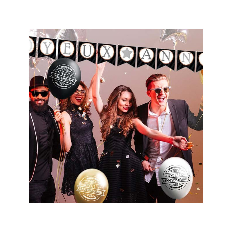 Inclus : 1 guirlande carton joyeux anniversaire noir 5m
