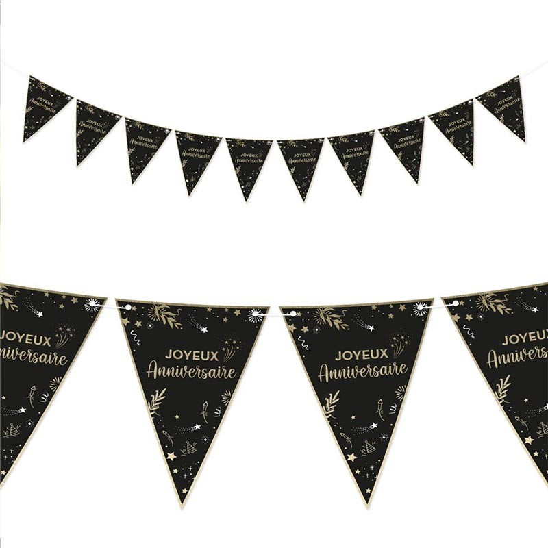 - 1 Guirlande Joyeux anniversaire noir/or fanion 3m