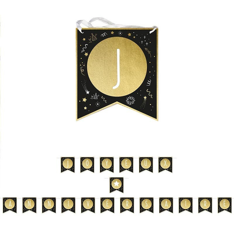 Inclus : 1 guirlande carton joyeux anniversaire noire et or 5m